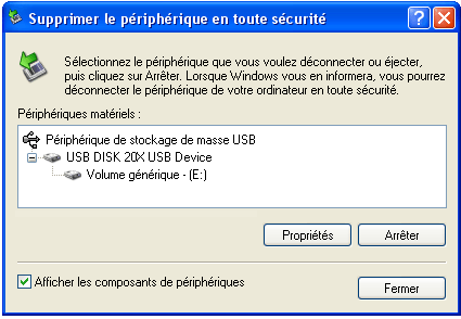Dès que la sauvegarde se termine la fenêtre disparaît, puis si vous avez coché l'option "supprimer le périphérique" la fenêtre suivante apparaît :